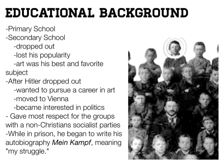 -While in prison, he began to write his autobiography Mein Kampf, meaning "my struggle."