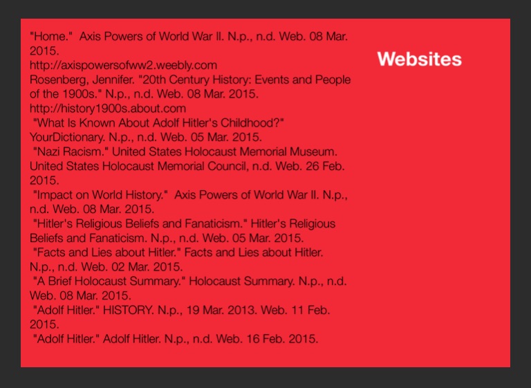 "Adolf Hitler." Adolf Hitler. N.p., n.d. Web. 16 Feb. 2015.
