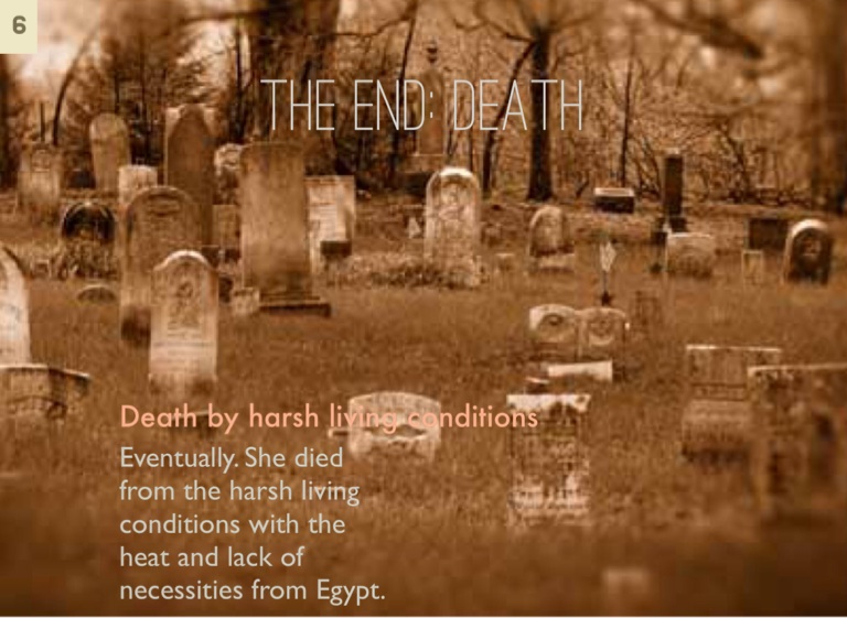 Eventually. She died from the harsh living conditions with the heat and lack of necessities from Egypt.