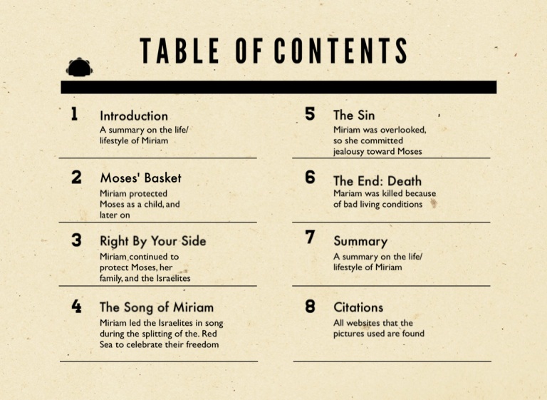 A summary on the life/lifestyle of Miriam