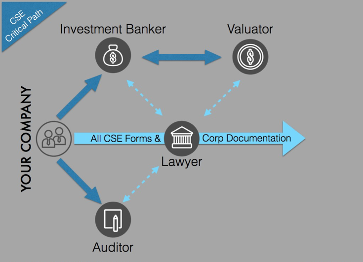 A.An Initial Application is Submitted to The CSE. The US Special Advisors Coordinate with the Other Capital Markets Professionals for their Roles. The Securities Lawyer Quarterbacks the Entire Process Which Takes 90-150 Days