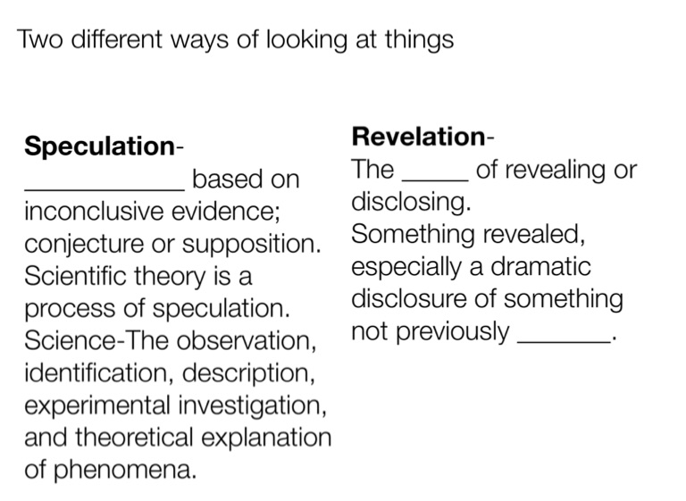 The _____ of revealing or disclosing.