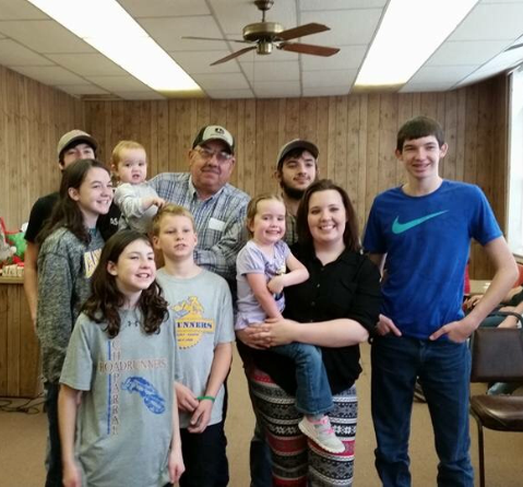 Her husband and grandkids/ step-grandkids.