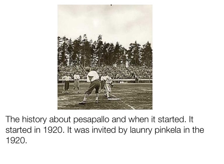 The history about pesapallo and when it started. It started in 1920. It was invited by launry pinkela in the 1920.
