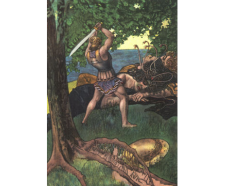 Fought many creatures. When he got back the king wanted to see the head immediately so when he showed the king and all the people waiting to see the head they all turned to stone. Next Perseus went to go find his mother and they lived in peace away from the king's harshness.