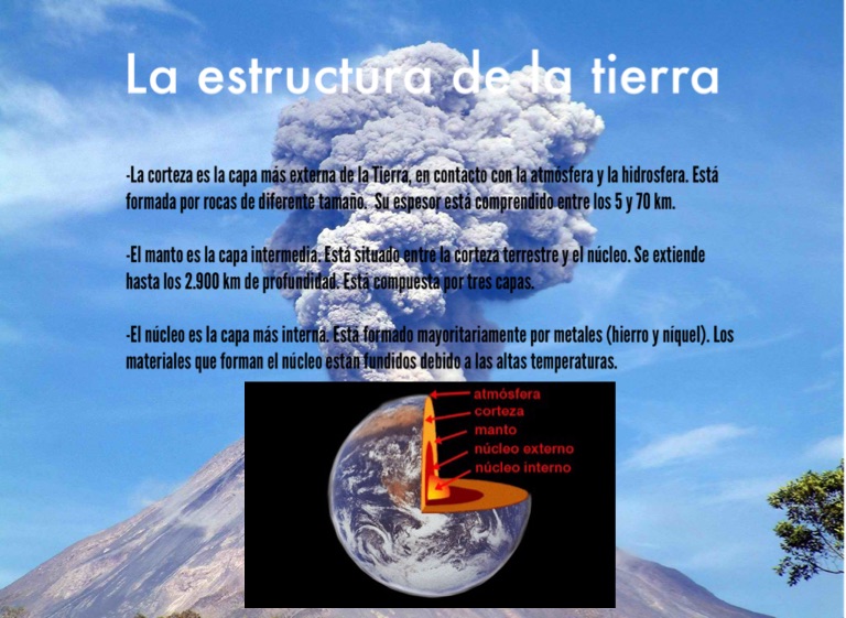 -El manto es la capa intermedia. Está situado entre la corteza terrestre y el núcleo. Se extiende hasta los 2.900 km de profundidad. Está compuesta por tres capas.