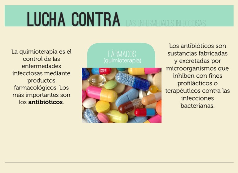 La quimioterapia es el control de las enfermedades infecciosas mediante productos farmacológicos. Los más importantes son los antibióticos.