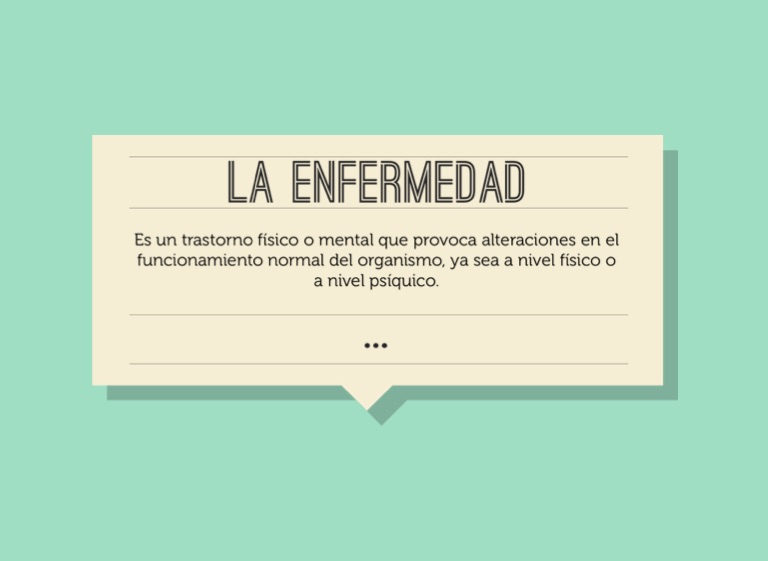 Es un trastorno físico o mental que provoca alteraciones en el funcionamiento normal del organismo, ya sea a nivel físico o a nivel psíquico.
