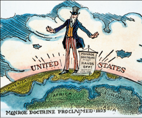 The Monroe Doctrine - in December of 1823, current president James Monroe declared that the United States would not tolerate a European nation colonizing an independent nation in North or South America through the Monroe Doctrine, He warned that any intervention into the Western Hemisphere to be a hostile act. This was brought up due to the fact that they would worried that Spain would try to take back its former colonies.