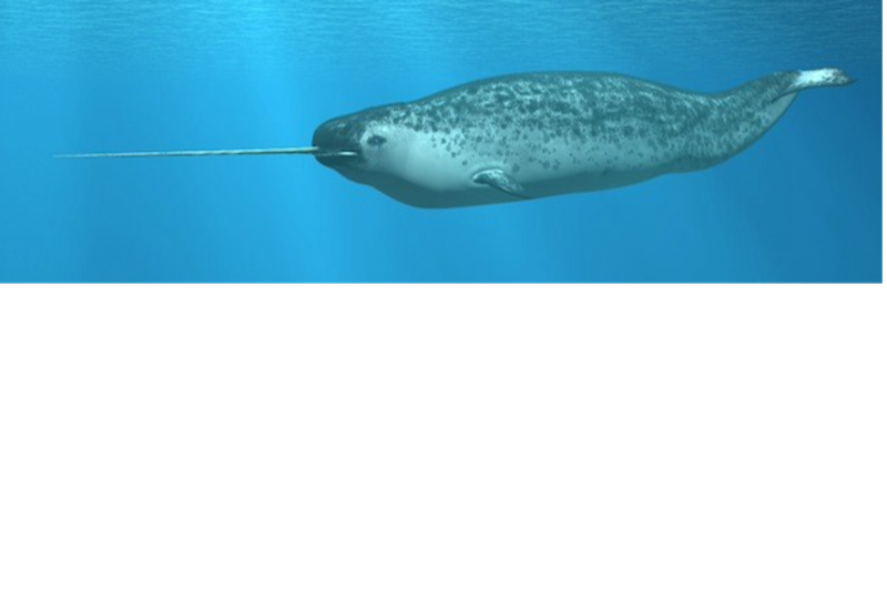 A medium sized toothed whale, with a large "tusk" from a protruding canine tooth.