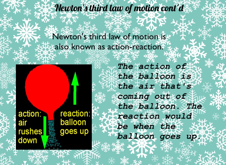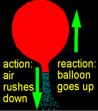 The action of the balloon is the air that's coming out of the balloon. The reaction would be when the balloon goes up.