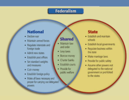 -Power that is divided between nation and states.