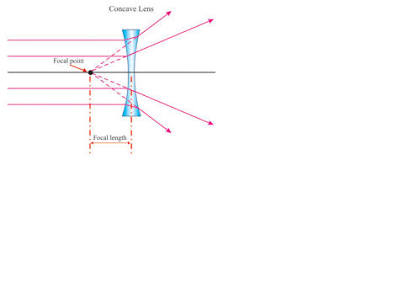 Concave lenses are thinner at the middle. Rays of light that pass through the lens are spread out (they diverge). A convex lens is a diverging lens. When parallel rays of light pass through a concave lens the refracted rays diverge so that they appear to come from one point called the principal focus
