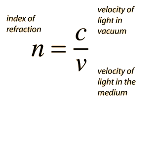 The index of refraction is defined as the speed of light in vacuum divided by the speed of light in the medium.