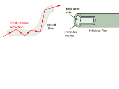 The field of fiber optics depends upon the total internal reflection of light rays traveling through tiny optical fibers. The fibers are so small that once the light is introduced into the fiber with an angle within the confines of the numerical aperture of the fiber, it will continue to reflect almost losslessly off the walls of the fiber and thus can travel long distances in the fiber. Bundles of such fibers can accomplish imaging of otherwise inaccessible areas.