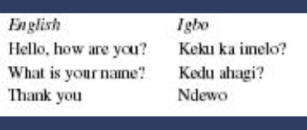 The Igbo language consists of 36 letters: 8 vowels, 19 consonants, and 9 blends.