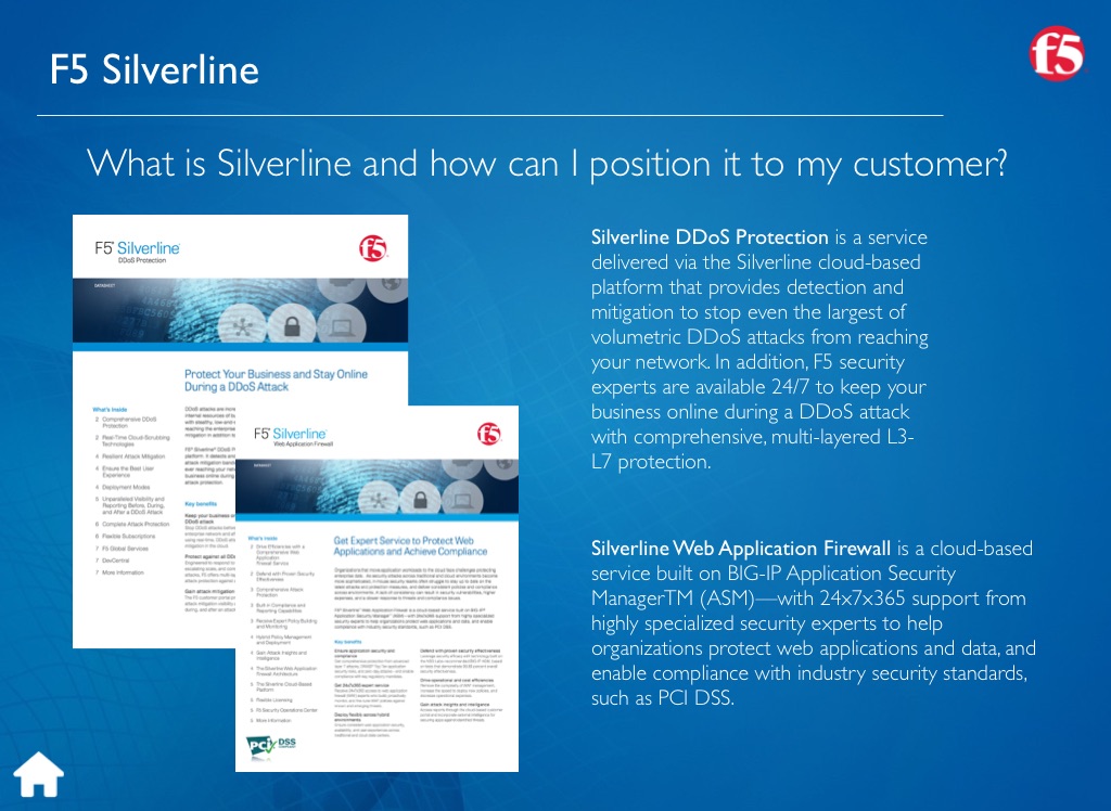 Silverline Web Application Firewall is a cloud-based service built on BIG-IP Application Security ManagerTM (ASM)—with 24x7x365 support from highly specialized security experts to help organizations protect web applications and data, and enable compliance with industry security standards, such as PCI DSS.