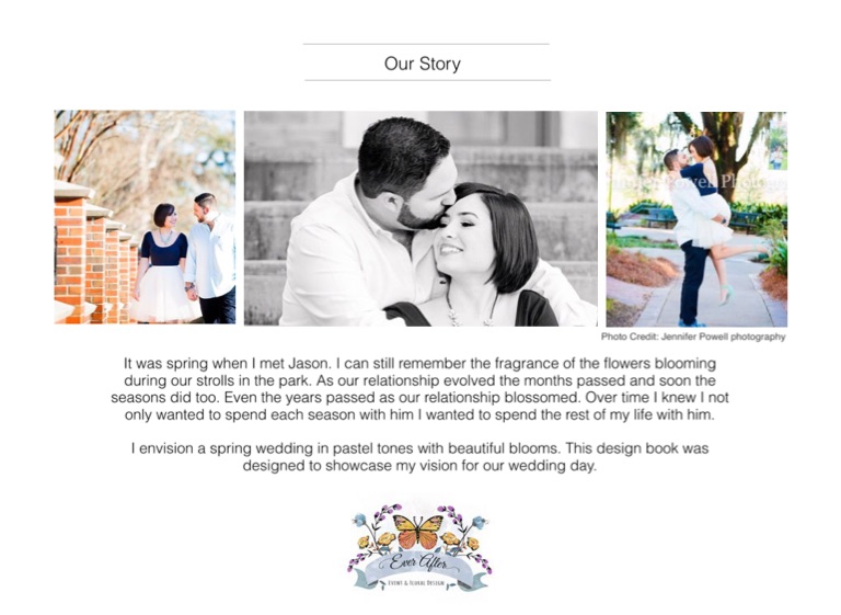 It was spring when I met Jason. I can still remember the fragrance of the flowers blooming during our strolls in the park. As our relationship evolved the months passed and soon the seasons did too. Even the years passed as our relationship blossomed. Over time I knew I not only wanted to spend each season with him I wanted to spend the rest of my life with him.