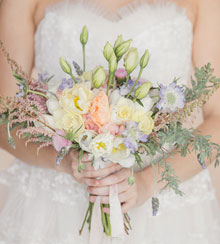 Example: Soft shades of blush, taupes and pastels will compliment each other. While accents of white, ivory and greens will make the floral elements pop. Wood and brass tones will give a masculine feel to this otherwise feminine color palette.
