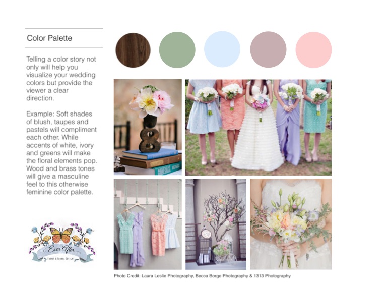 Telling a color story not only will help you visualize your wedding colors but provide the viewer a clear direction.
