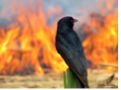The fork tailed drongo is a rare example of an animal that benefits from fires in the savannah, the fleeing insects, or insects already caught on fire, serve as a buffet for these birds.