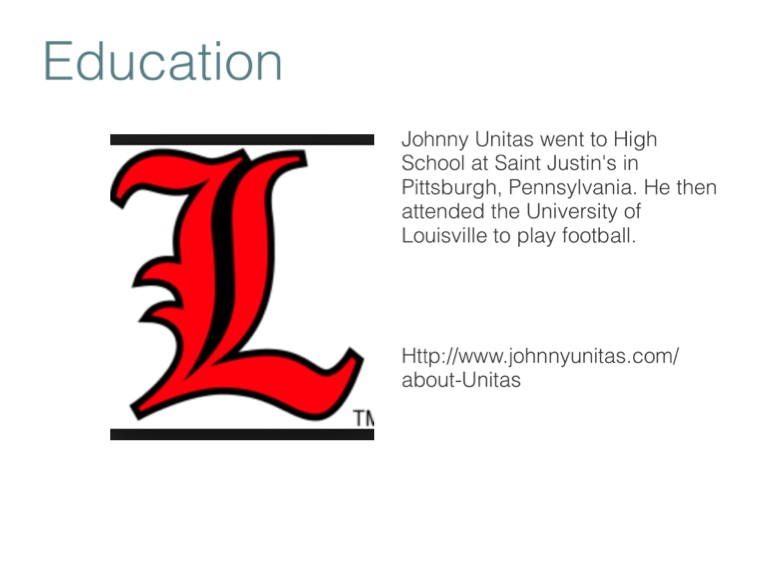 Johnny Unitas went to High School at Saint Justin's in Pittsburgh, Pennsylvania. He then attended the University of Louisville to play football.