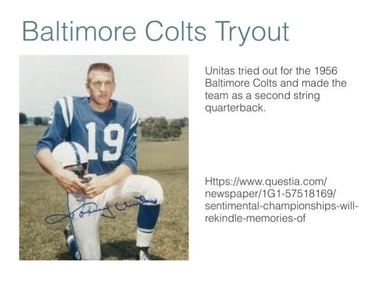 Unitas tried out for the 1956 Baltimore Colts and made the team as a second string quarterback.