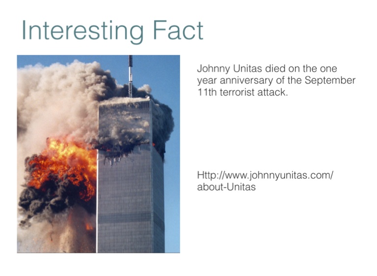 Johnny Unitas died on the one year anniversary of the September 11th terrorist attack.