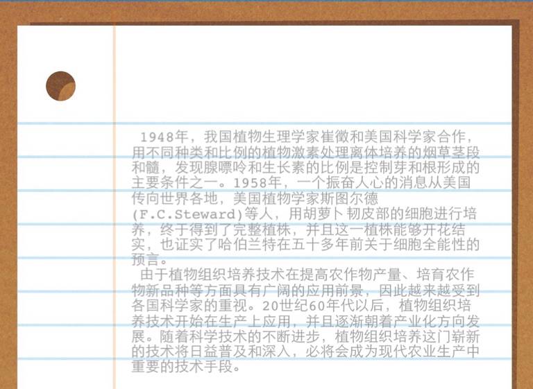 1948年,我国植物生理学家崔徵和美国科学家合作,用不同种类和比例的植物激素处理离体培养的烟草茎段和髓,发现腺嘌呤和生长素的比例是控制芽和根形成的主要条件之一。1958年,一个振奋人心的消息从美国传向世界各地,美国植物学家斯图尔德(F.C.Steward)等人,用胡萝卜韧皮部的细胞进行培养,终于得到了完整植株,并且这一植株能够开花结实,也证实了哈伯兰特在五十多年前关于细胞全能性的预言。