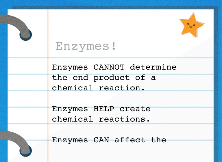 Enzymes HELP create chemical reactions.