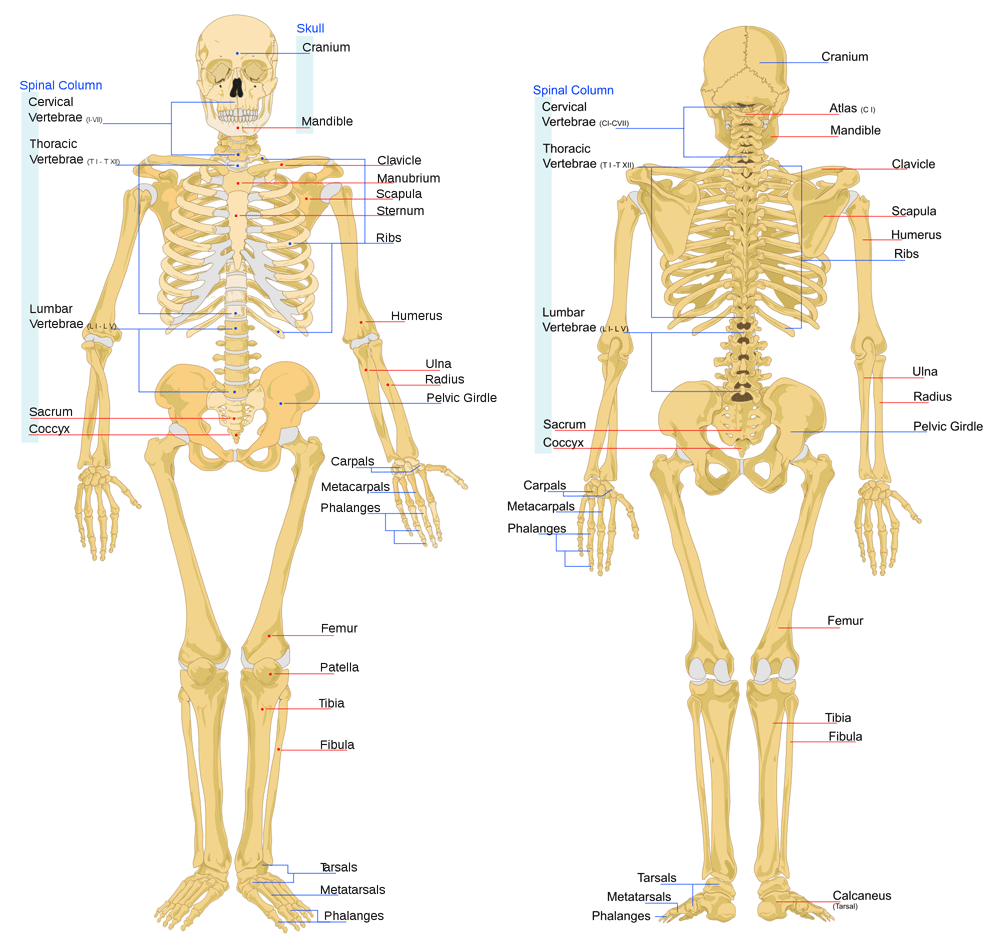 Bones on a skeleton