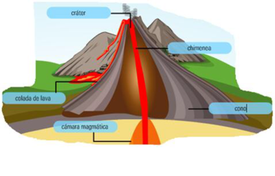 Las partes de un volcán son la chimenea el cono el cráter la cámara magmática y colada de lava
