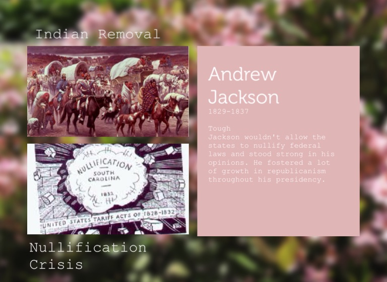 Jackson wouldn't allow the states to nullify federal laws and stood strong in his opinions. He fostered a lot of growth in republicanism throughout his presidency.