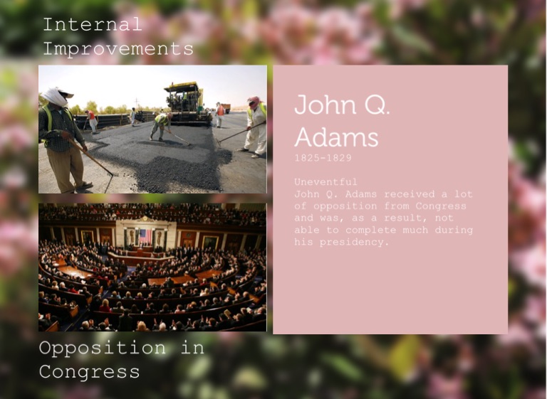 John Q. Adams received a lot of opposition from Congress and was, as a result, not able to complete much during his presidency.