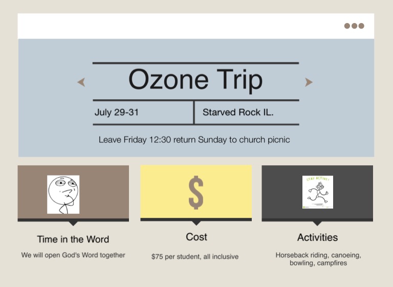 Leave Friday 12:30 return Sunday to church picnic