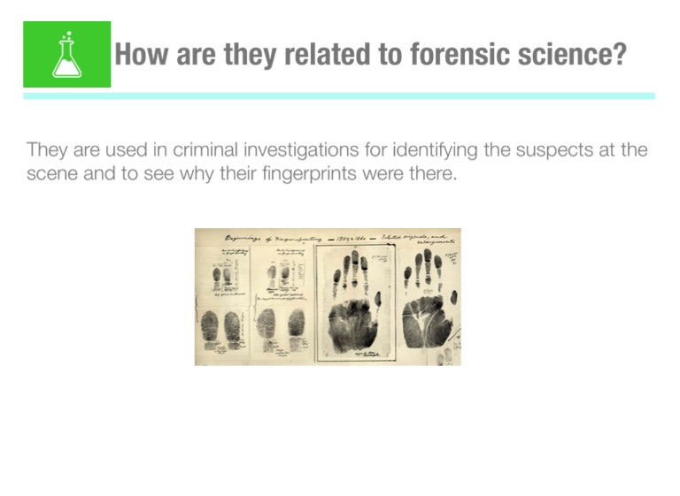 They are used in criminal investigations for identifying the suspects at the scene and to see why their fingerprints were there.