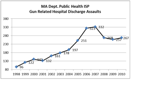 Massachusetts has a national reputation as a bastion of gun control, but crimes and injuries related to firearms have risen,since the state passed a comprehensive package of gun laws in 1998. Murders committed with firearms have increased significantly, aggravated assaults and robberies involving guns have risen, and gunshot injuries are up, according to FBI and state data.