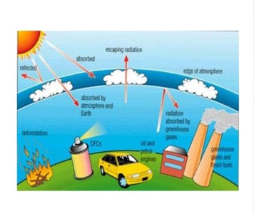 Depletion of Ozone layer: Ozone exists in earth’s stratosphere and is responsible for protecting humans from harmful ultraviolet (UV) rays. Earth’s ozone layer is depleting due to the presence of chlorofluorocarbons, hydro chlorofluorocarbons in the atmosphere. As ozone layer grows thin, it will emit harmful rays back on earth and can cause skin and eye related problems. UV rays also have the capability to affect crops. As humans are putting air pollutants into the atmosphere they are affecting the ozone layer directly. If there is a reduced use of fossil fuel's or other factors that create air pollutants, than the ozone layer will stop thinning.