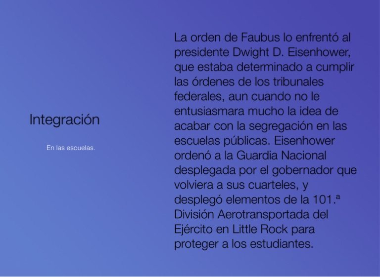 La orden de Faubus lo enfrentó al presidente Dwight D. Eisenhower, que estaba determinado a cumplir las órdenes de los tribunales federales, aun cuando no le entusiasmara mucho la idea de acabar con la segregación en las escuelas públicas. Eisenhower ordenó a la Guardia Nacional desplegada por el gobernador que volviera a sus cuarteles, y desplegó elementos de la 101.ª División Aerotransportada del Ejército en Little Rock para proteger a los estudiantes.