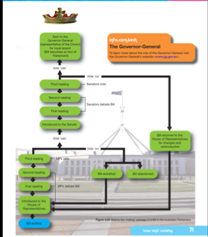 To make or change a statute law is a lengthy process and can involve a large amount of debate, each member of parliament may speak either for or against before it is voted on, the bill must pass through the two Houses of Parliament (upper and lower) must agree on the bill.