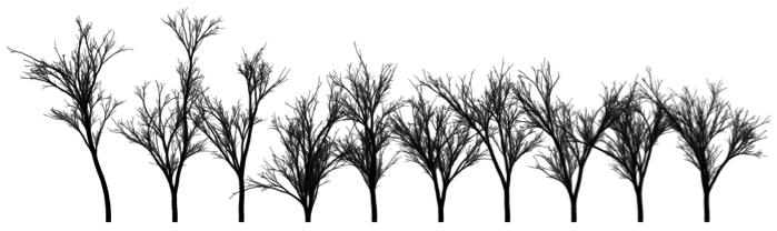 Als je de code hiernaast toevoegt aan de bestaande code zullen 10 bomen op een rij verschijnen. Dit dankzij de loop in je code, die ervoor zorgt dat telkens een nieuwe boom verschijnt op afstand 15 van de vorige.