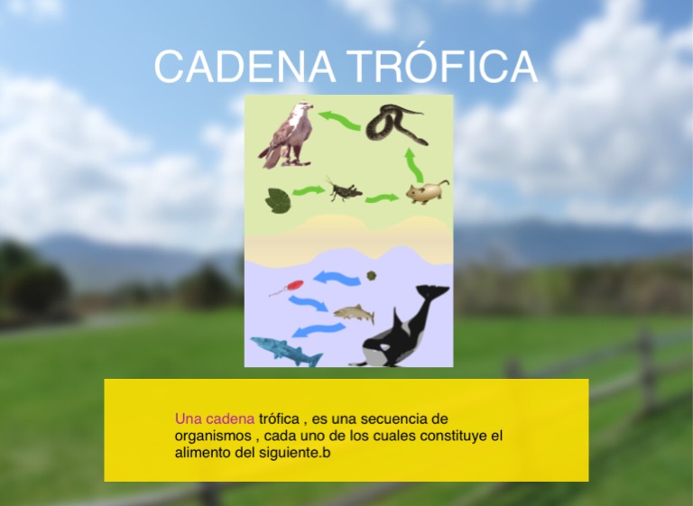 Una cadena trófica , es una secuencia de organismos , cada uno de los cuales constituye el alimento del siguiente.b