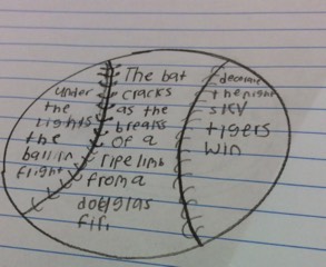 I like that you had this originally on colored construction paper -- I hadn't thought of presenting it like that but it sounds like a cool presentation for the piece. Have you tried taking a photo of it and posting that with your poem on here?