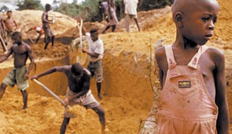 Child labor... Most young kids are forced to mine for diamonds