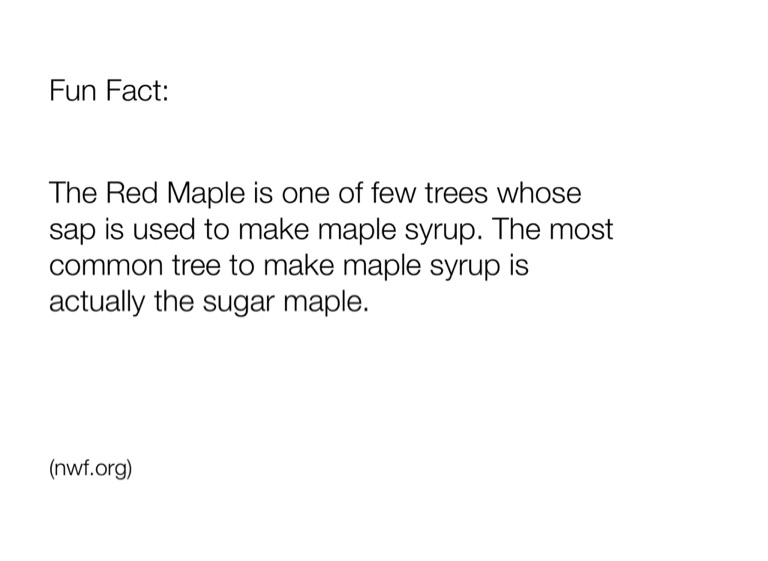 The Red Maple is one of few trees whose sap is used to make maple syrup. The most common tree to make maple syrup is actually the sugar maple.