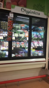 Existen dos áreas de refrigeración una con puertas herméticas y una abierta con contenedores de plástico. El etiquetado de productos es correcto ubicado debajo del mismo.