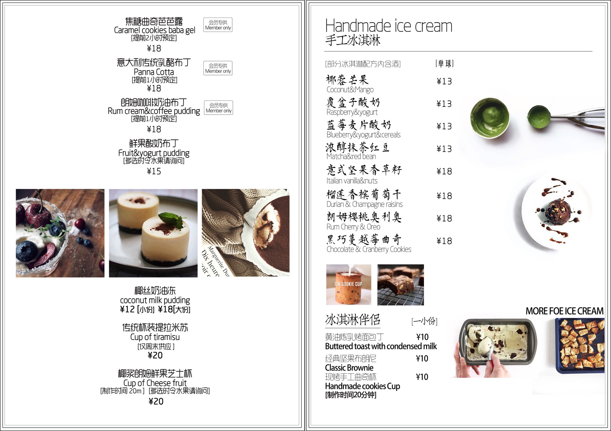 菜单整体设计突出餐品本身,除封面以外都采用书页式的简介排版