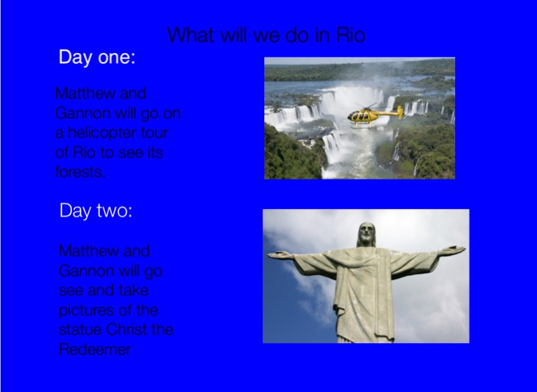 Matthew and Gannon will go see and take pictures of the statue Christ the Redeemer