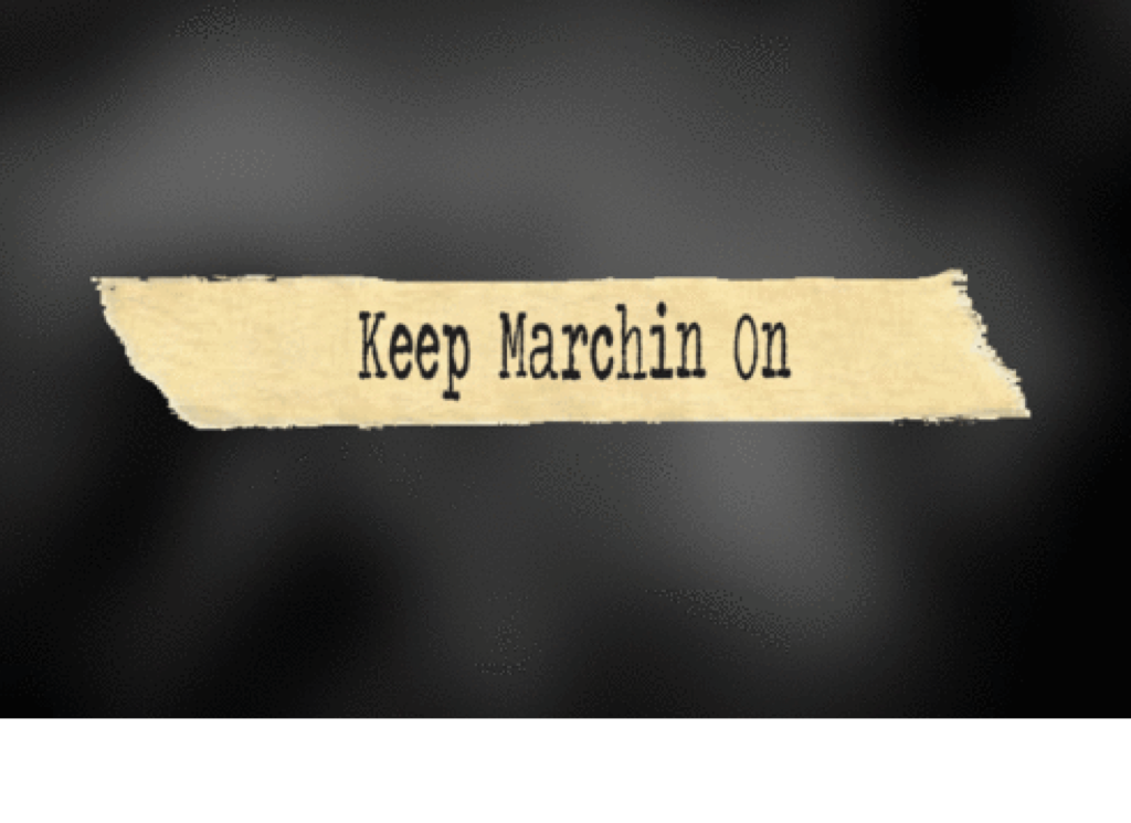 The song Marchin On is about how important to keep going no matter the obstacles you are facing. Even though you may be physically alone, there are always someone that you you present in your life. The couple in the song have been throught a lot, but they have faced it together which helps them "keep marchin on."