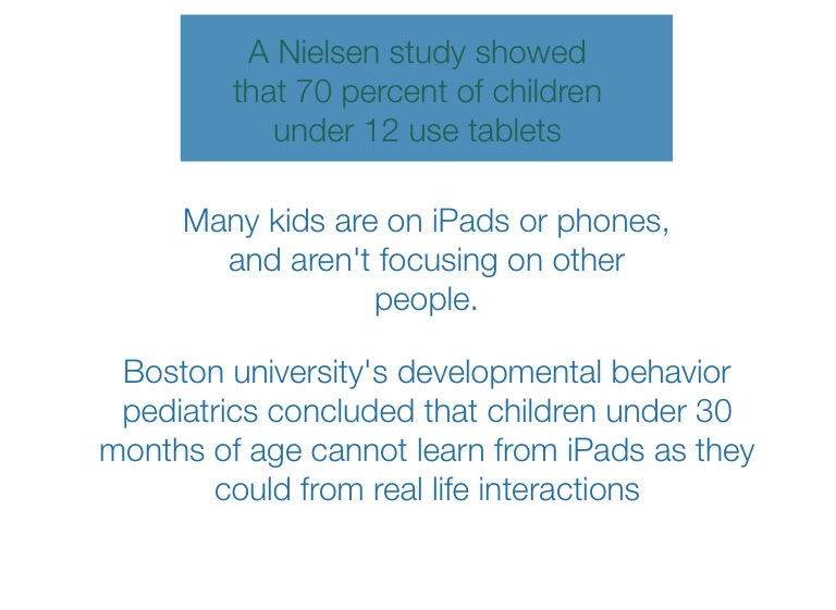 Many kids are on iPads or phones, and aren't focusing on other people.